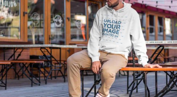 Man Wearing Hoodie in Restaurant Mockup Template