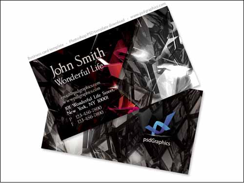 Two sided print ready business card template, futuristic graphic design. The front side with a basic info and the back side with logo on an abstract shiny crystals background. Get the print ready files and the font named Imperator which I found on Dafont.