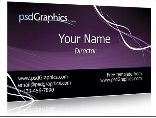 Modern look purple business card template. Editable Photoshop file for professional printing. Download source file and put your own info and logo. A dark purple background with abstract waves and a decorative elements.