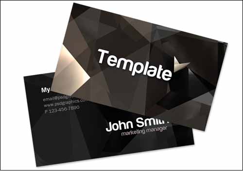 Stylish business card template, two sided print ready design. A dark background with refraction effects with logo on the front side, and black background with short info on the back side.