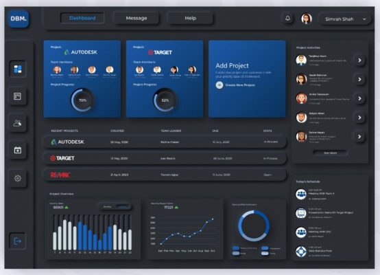 Project manager Dashboard Neumorphism Dark UI